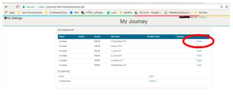 Once you click on this "button" you'll see a list of the Herrmann® Assessments you've completed, and you can then click "Share" next to the one you'd like to make available to your Certified Practitioner.