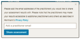 Type in the email address of the Practitioner you would like to “Share” your assessment with, and then click the “Share assessment” confirmation.