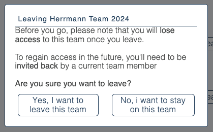 You will see a confirmation screen asking you to confirm that you want to leave the team. Click “Yes, I want to leave this team” to confirm.